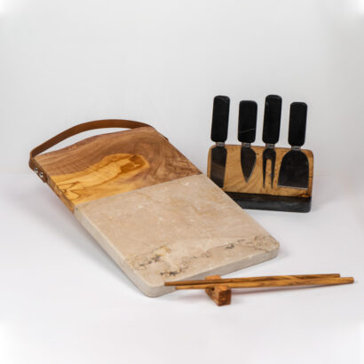 Cet élégant ensemble de couteaux à fromage est l’accessoire parfait pour vos plateaux de fromages gourmands. Composé de quatre pièces aux lames en acier inoxydable. Il inclut un couteau à pâte dure, un couteau à pâte molle, une fourchette à fromage et une pelle à fromage. Les manches noires robustes et modernes offrent une prise en main confortable. Le socle en bois ajoute une touche naturelle à votre table.